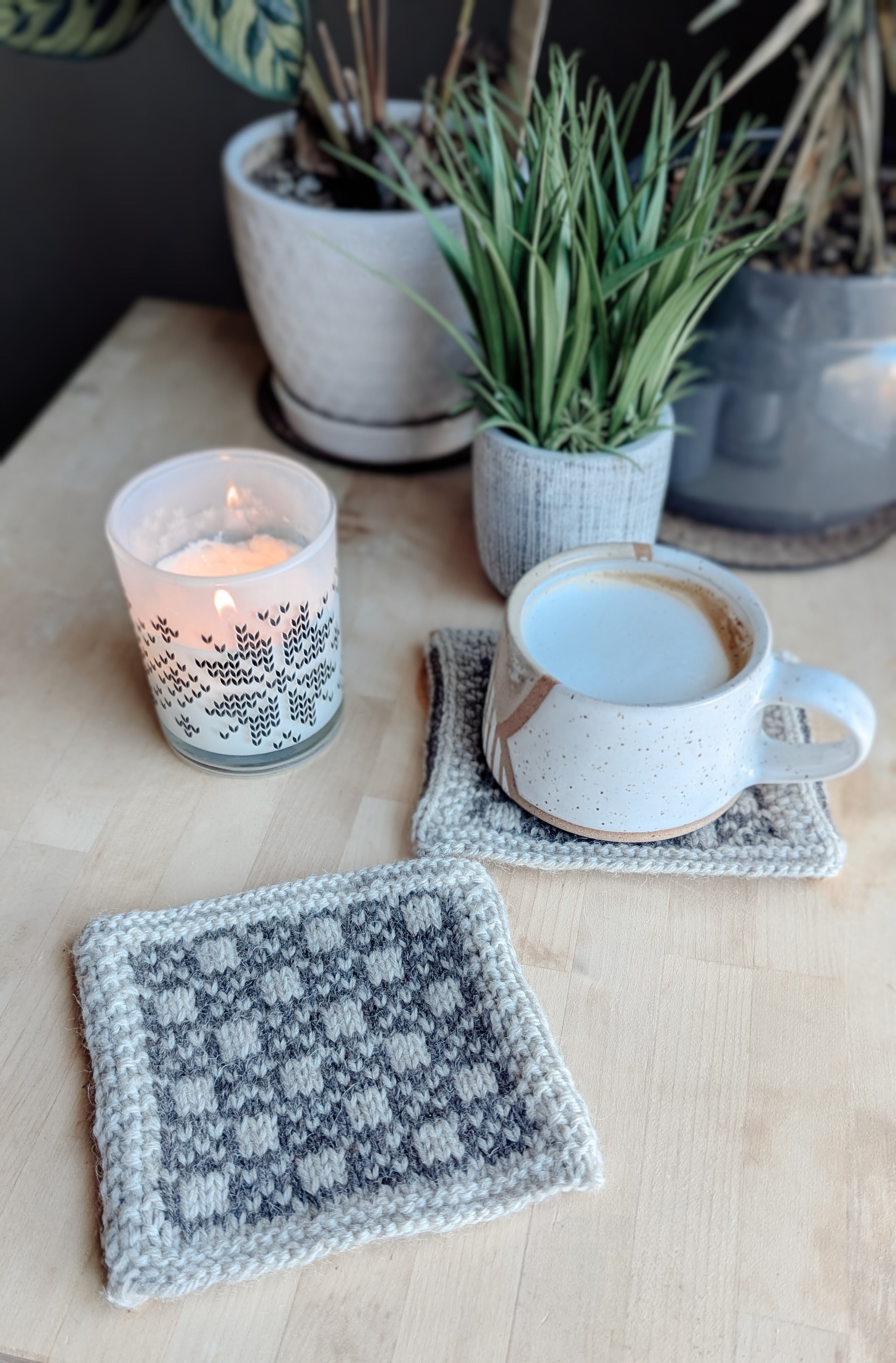 Complete knitting portion of Colourwork Coaster pattern and bring to class. Pattern will be provided to registrants in time to complete homework.