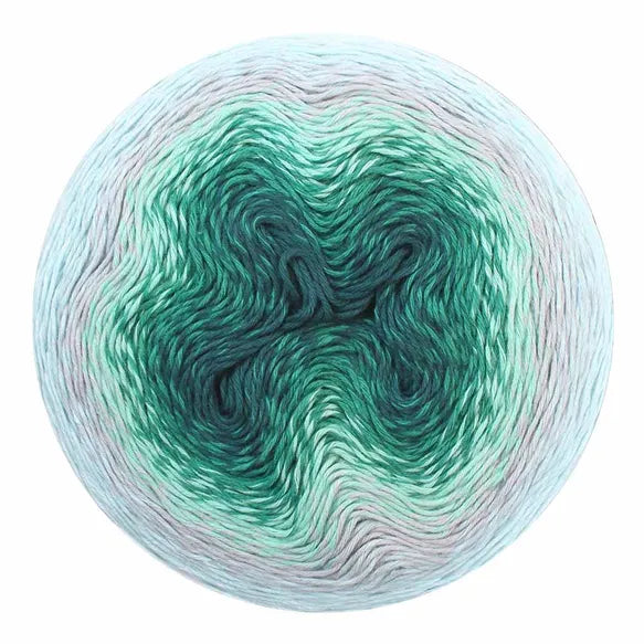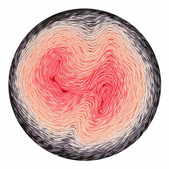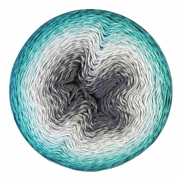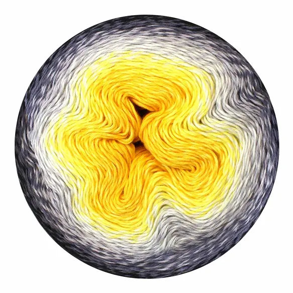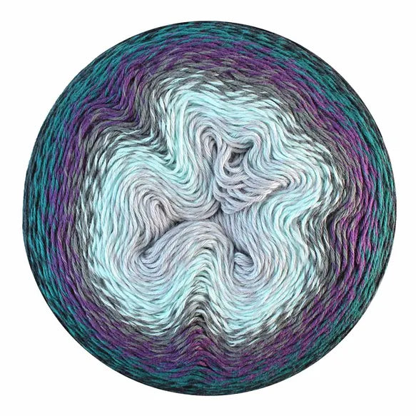 Unlike other gradient yarns, Scheepjes Whirl has a generous twist to enable speed while working the yarn and to help prevent splitting. Each colourway also has a unique twisted ply which adds to the distinctiveness of each colourway. At each colour change, the fibres have been tied by hand leaving a subtle fluff or fuzz buzz, which will hide discretely between your stitches, giving you a smooth, flawless finish with a characteristic flavour! The extra-large Scheepjes Whirl yarn cakes hold an enormous 1000 metres of softly colour changing yarn; more than enough for a large shawl or wrap. Scheepjes Whirl is a Fingering weight yarn suitable for needle/hook sizes 3.50-4.00mm